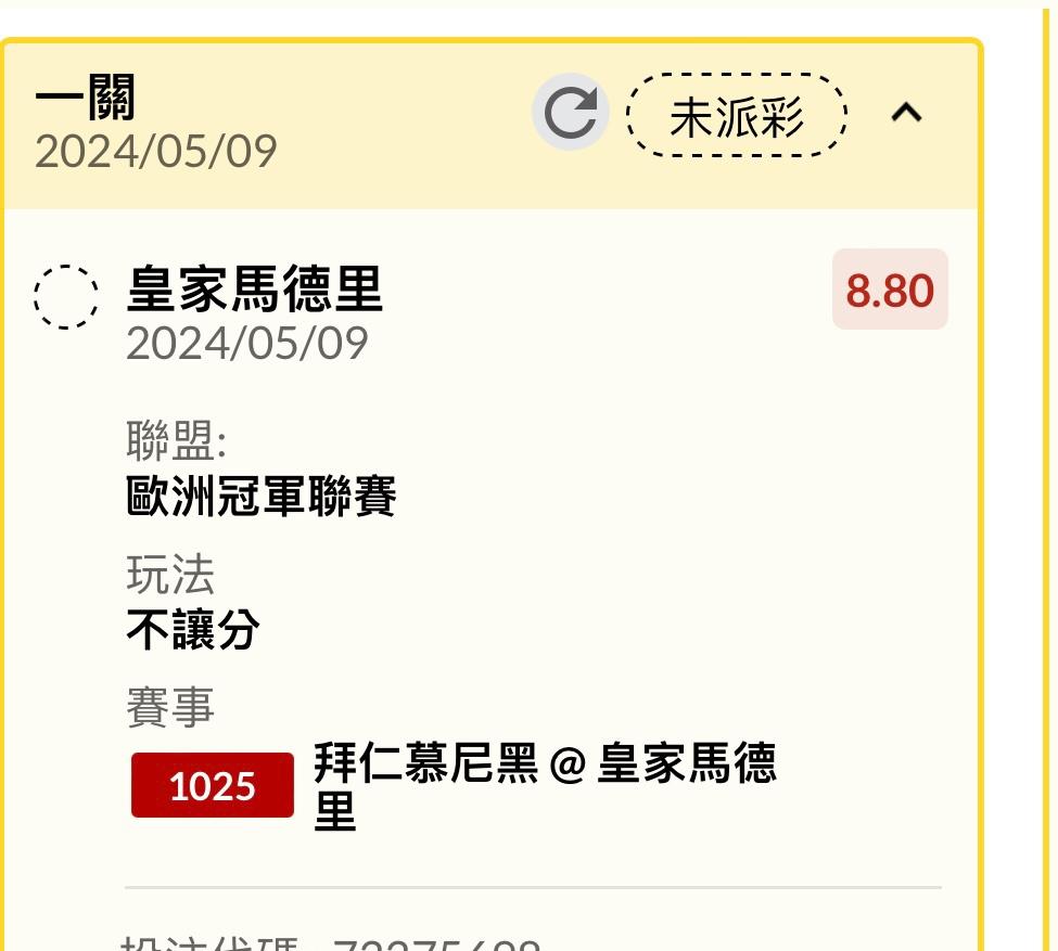 推 b08297: 等皇馬漲到2倍來買一下好了,1.75買不下去 49.216.52.222 05/09 03:20