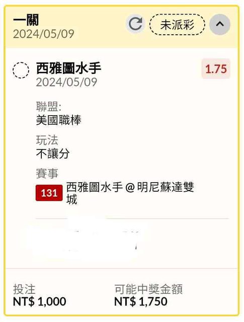 ※ 文章網址: https://ptt-site.org.tw/SportLottery/M.1715210494.A.5BA
