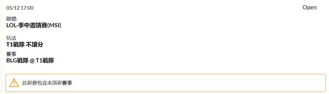 → Dicky1001: 未派彩有三個可能,未開賽、開打中, 1.200.44.81 05/12 09:58
