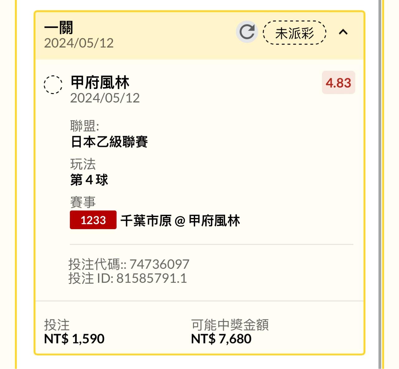 → LysD7777: 然後千葉上次也有開啊0:1 我被騙買1.5 101.12.20.227 05/12 15:19
