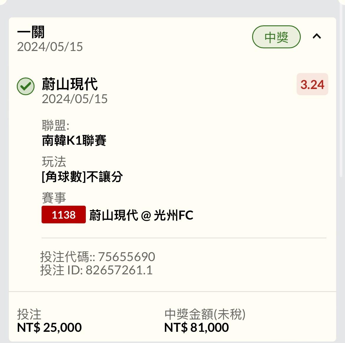 → tieysn: 這場賠率給好給滿 錯怪你了韓k 1.173.52.49 05/15 17:14