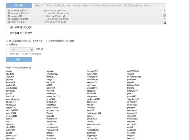 抽100位(此篇為律師五月抽獎第三篇)