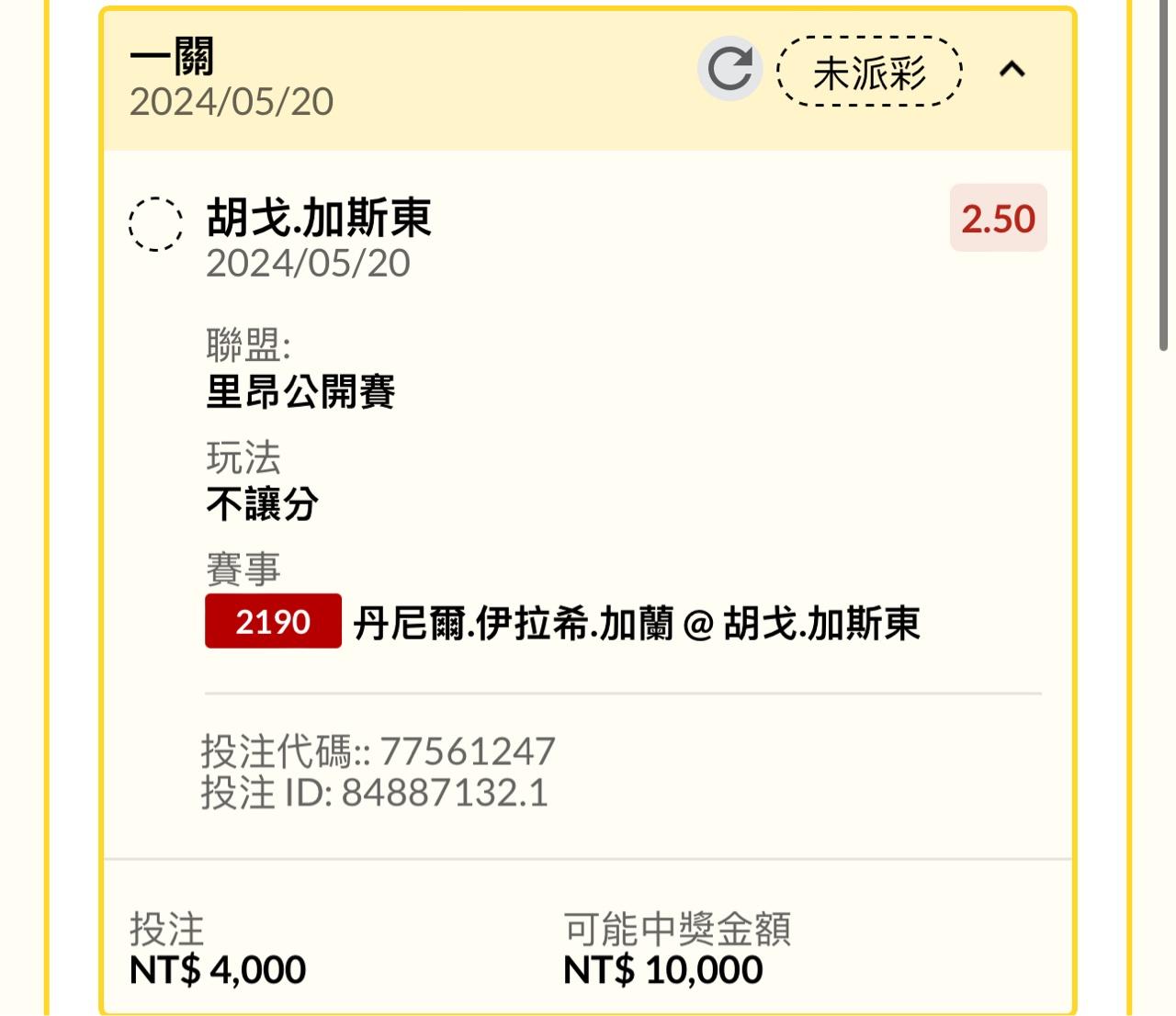 推 suyuren: 第二盤加蘭+1.5會派彩嗎 110.28.89.200 05/21 07:44