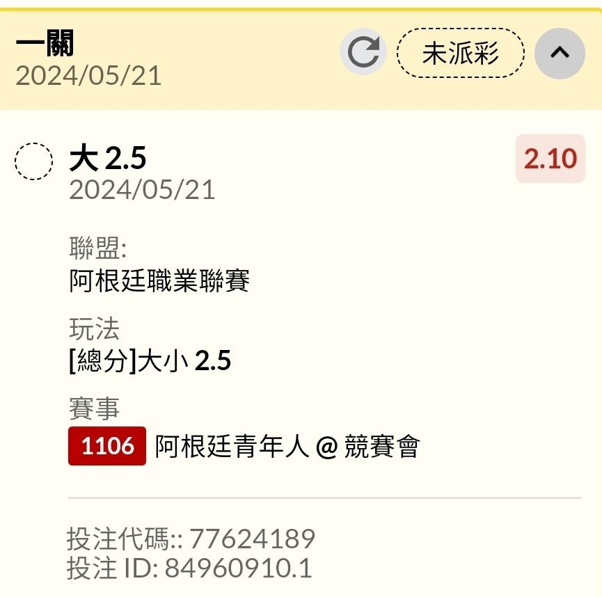 推 a2121257z: 阿根廷場中2.5小重注定存進場,買到等 27.52.188.100 05/21 09:58