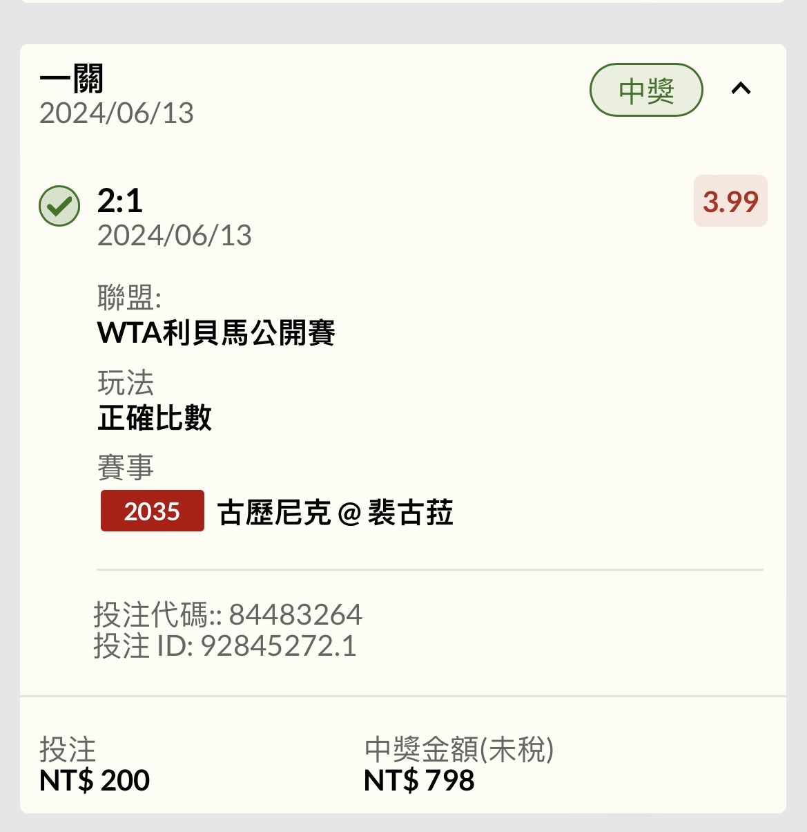 → Carlos002: 兩張狗屎賠率 加減收 111.240.86.14 06/13 19:19