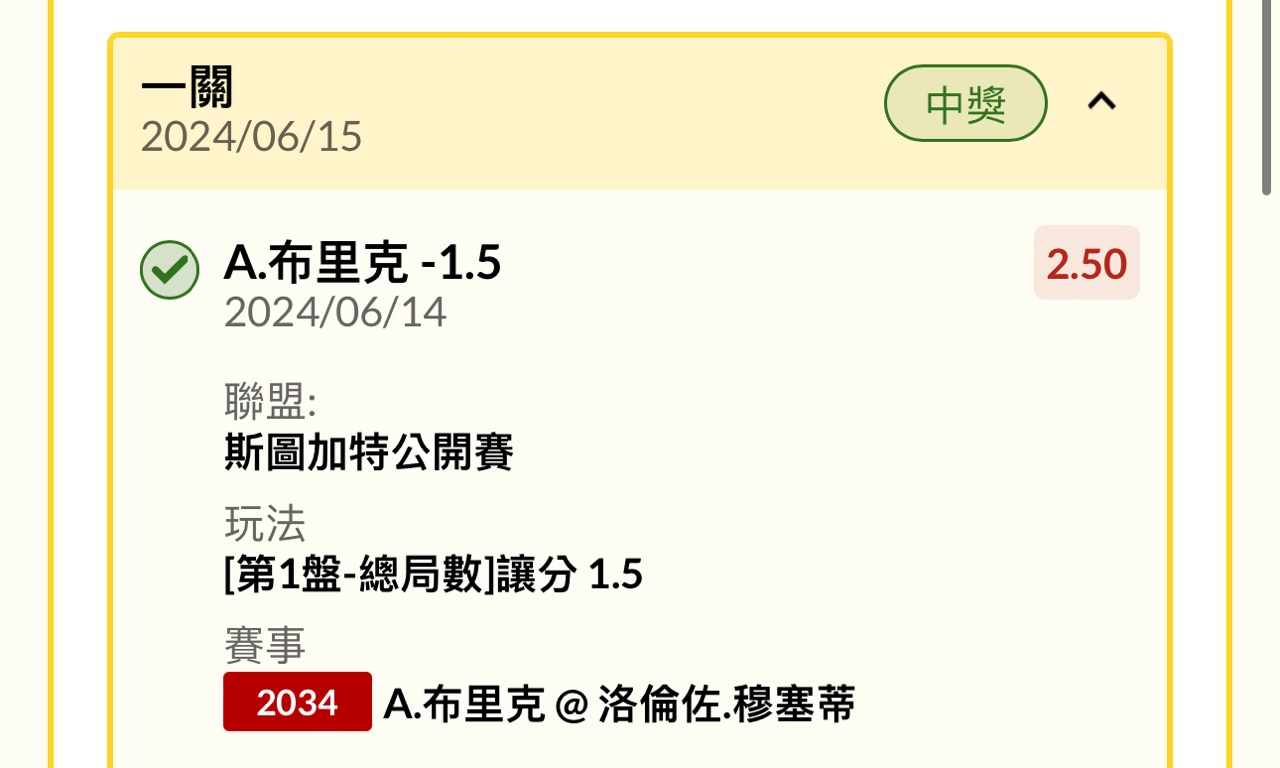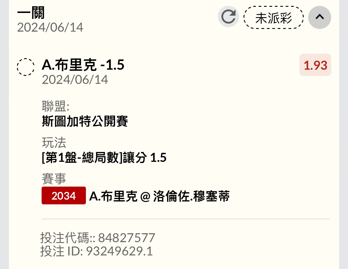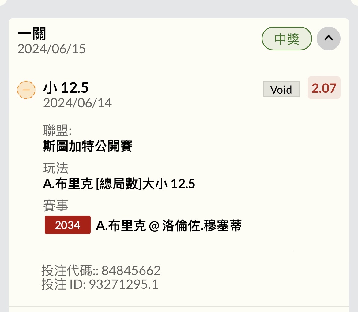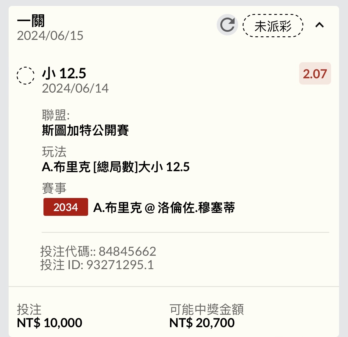 → binbinyolee: 賽前除了第一盤外 全退款 27.242.60.35 06/15 01:13