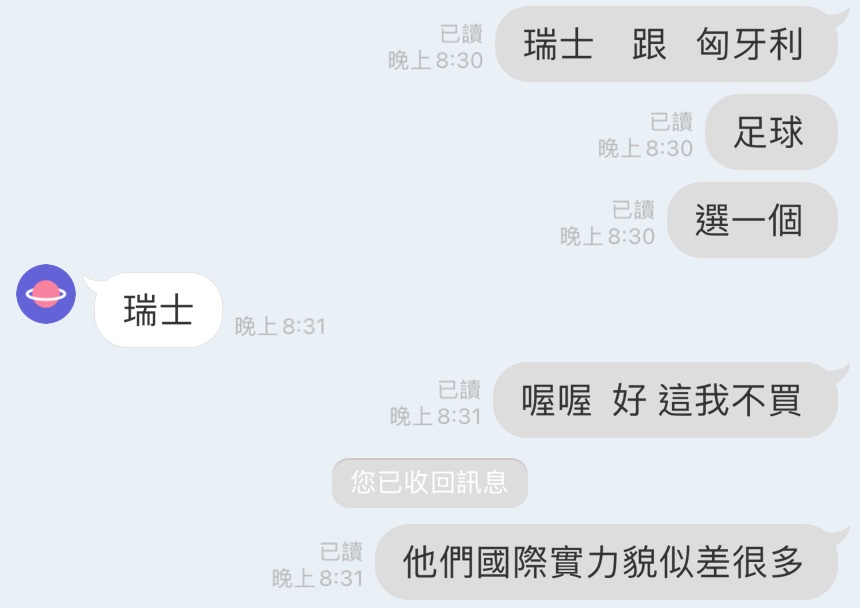 → simonangel: 瑞士沒有穩贏的喔 有一隻鬼過去了 123.195.149.15 06/15 20:34