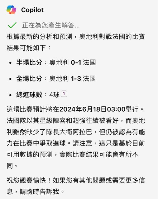 用bing一次問今天三場比賽的結果