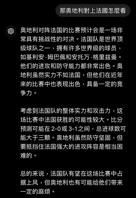 剛剛問了ChatGPT 今天歐國盃怎麼看