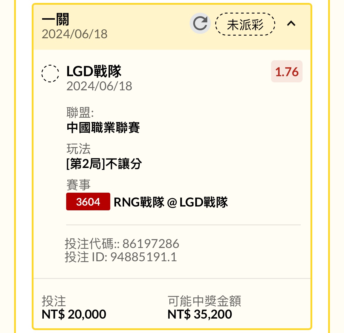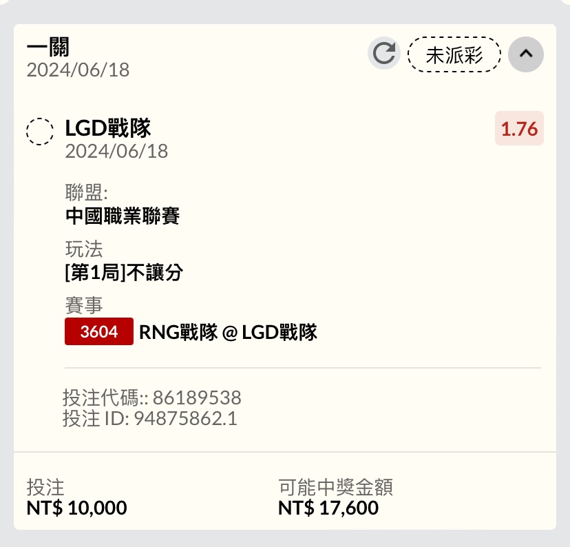 → xnet19943310: 押LGD讓1.5了 101.12.24.134 06/18 18:14