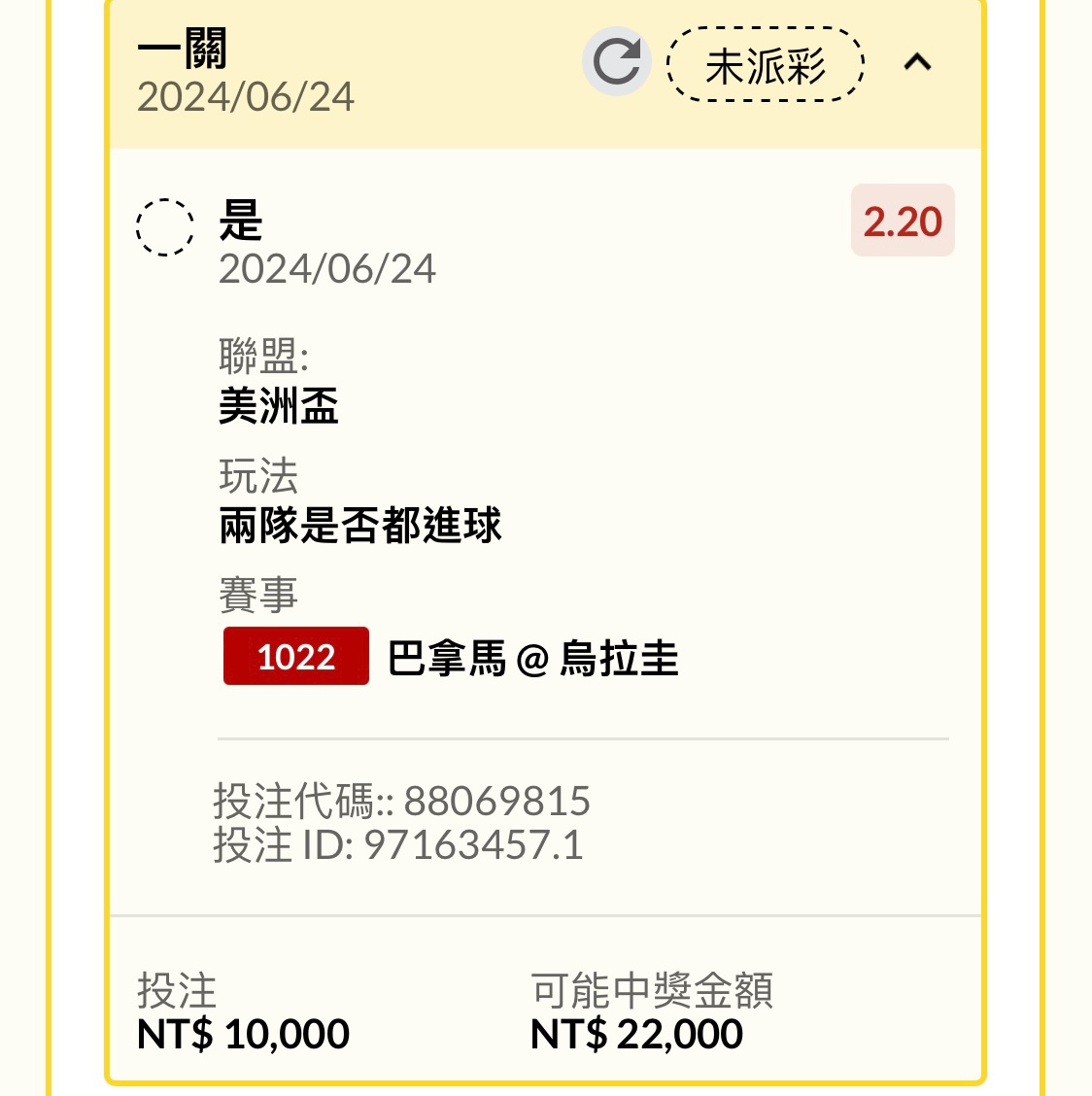 → nick04140414: 雙進終於2.2高賠率 101.12.115.22 06/24 10:57