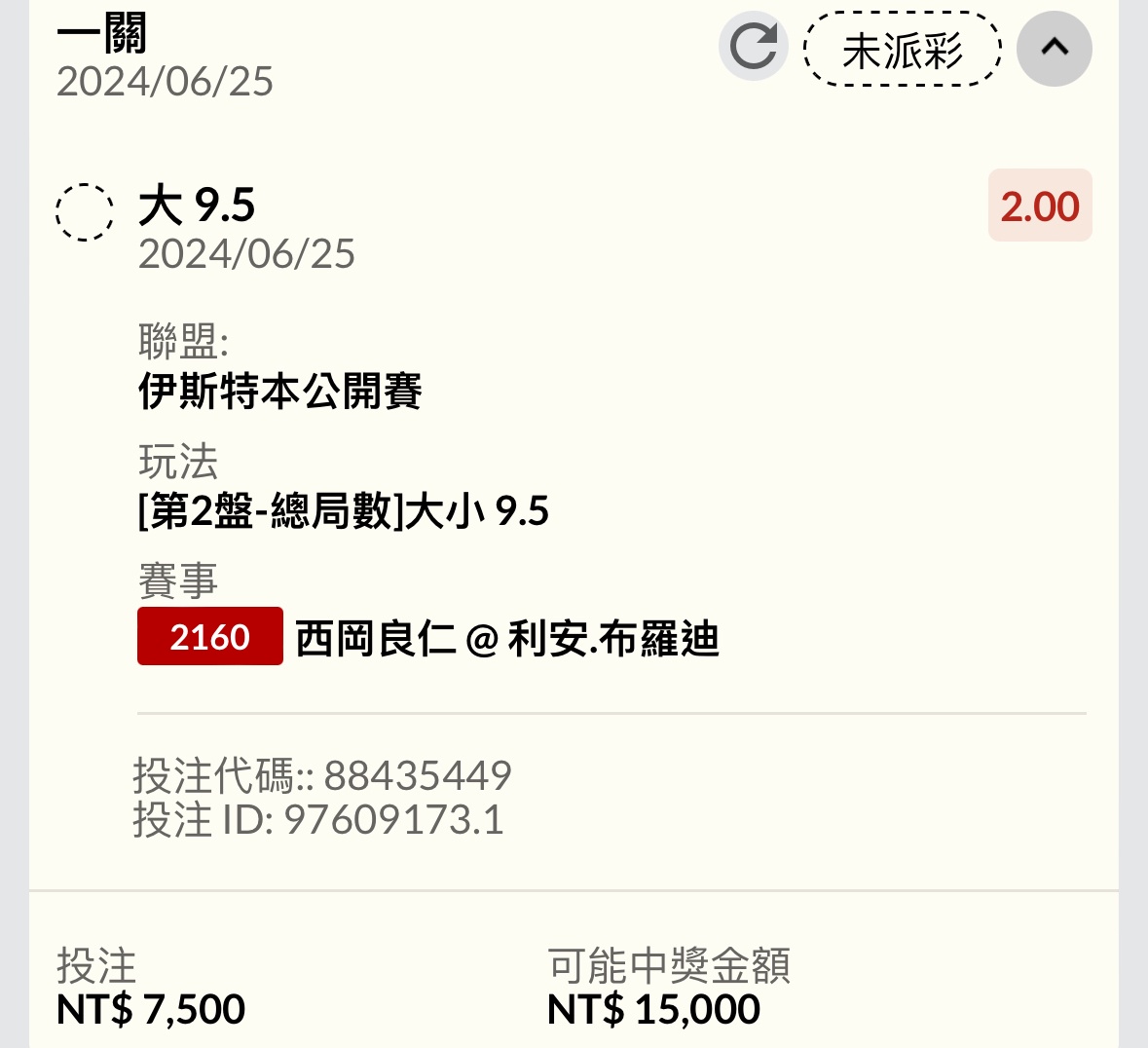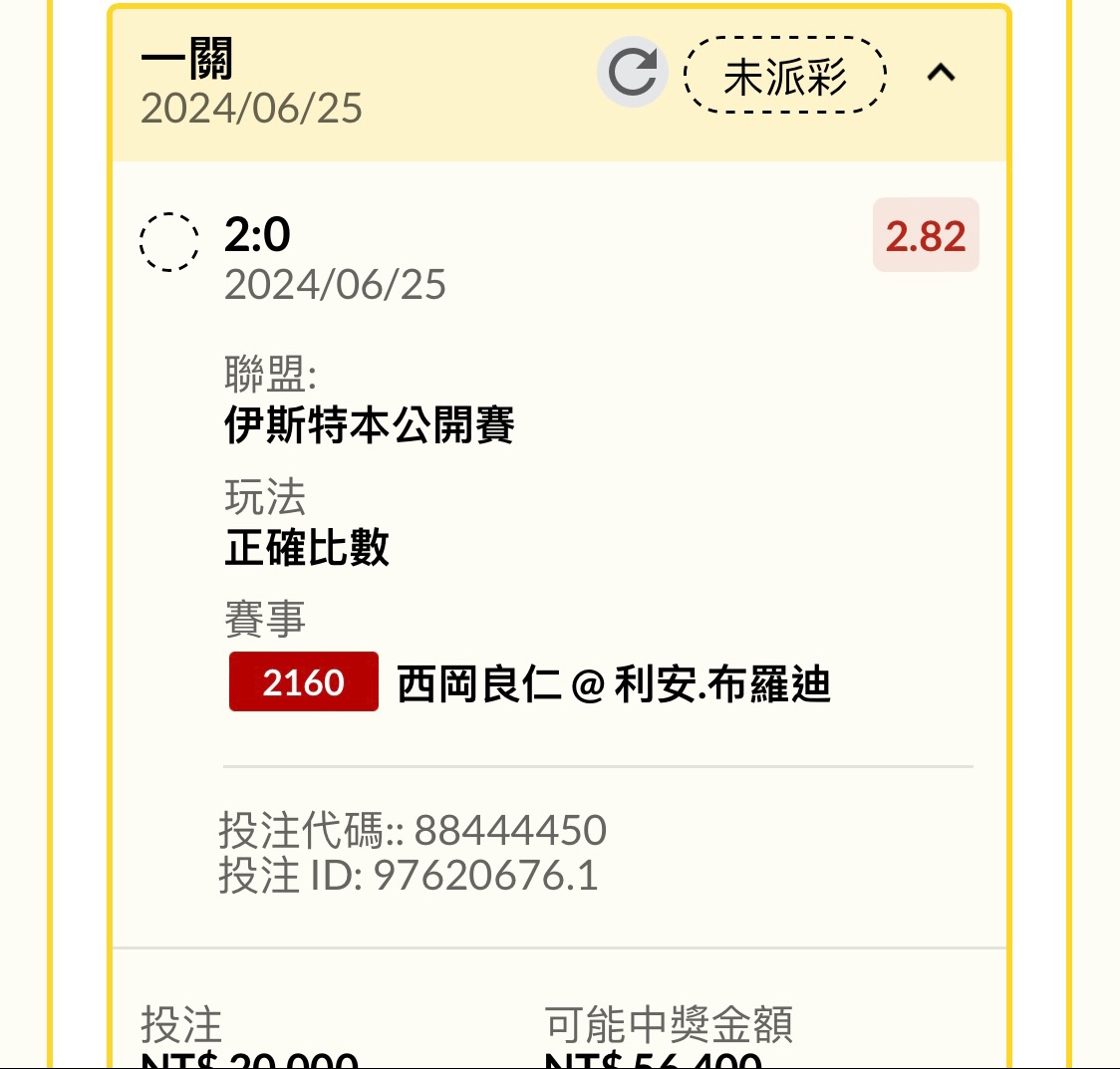 推 westlml: 下個日本人第2盤2.7倍100元看戲 1.200.120.183 06/25 21:10