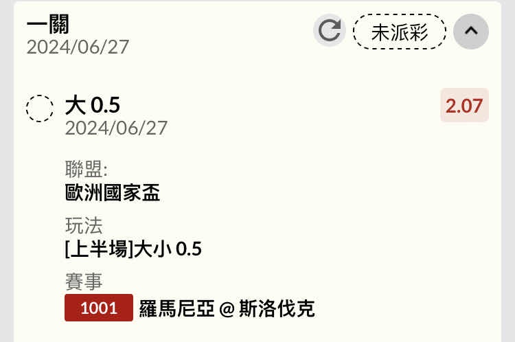 推 gamaqqq: 賽前斯洛伐克上半0.5大 2.15 27.247.6.135 06/27 00:27