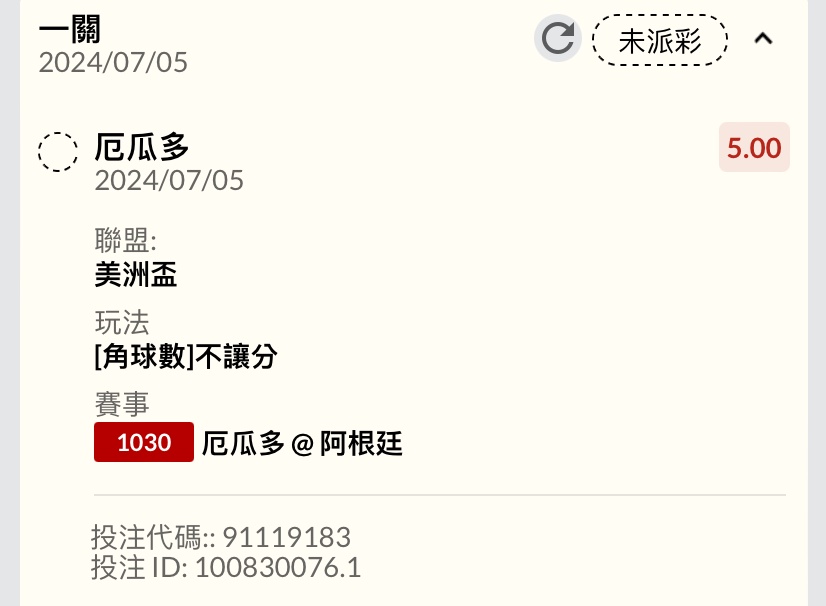 推 pcscu: 串關差1球 快來啊 1.200.50.243 07/05 10:45