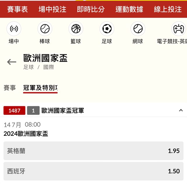 主推:英格蘭 冠軍(1.95)