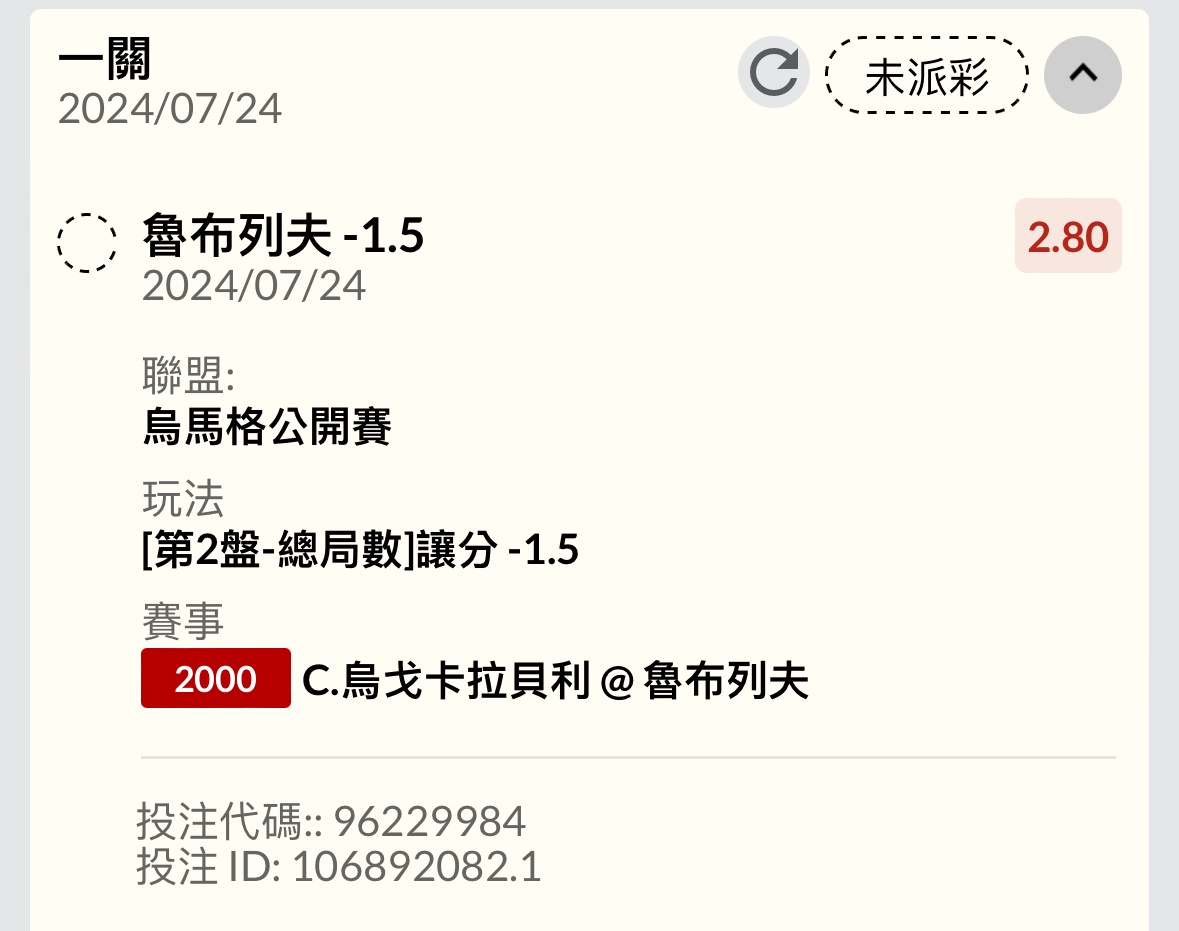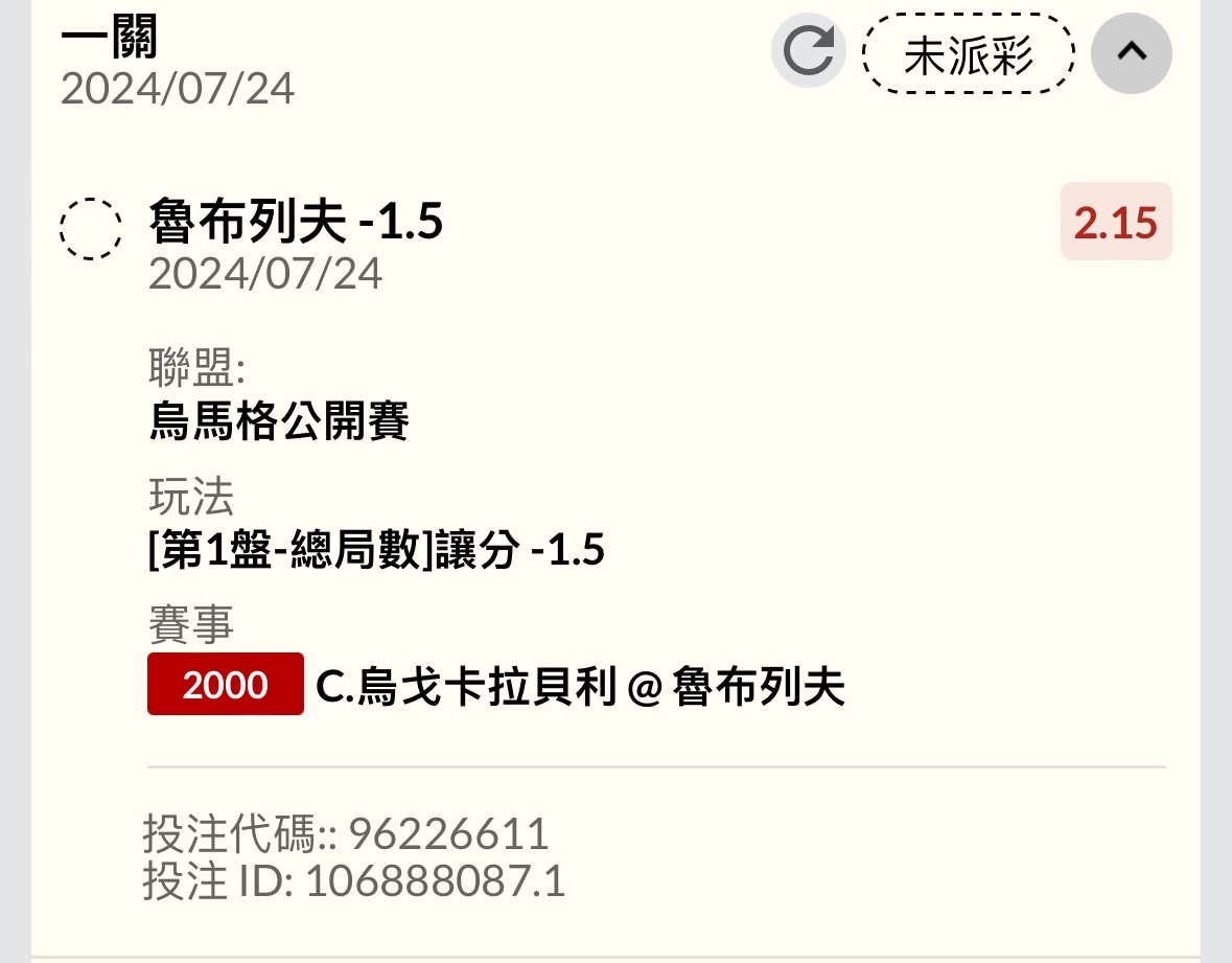 推 n124292913: +2.5能夠給吃嗎 重注20000 27.52.34.161 07/24 01:17