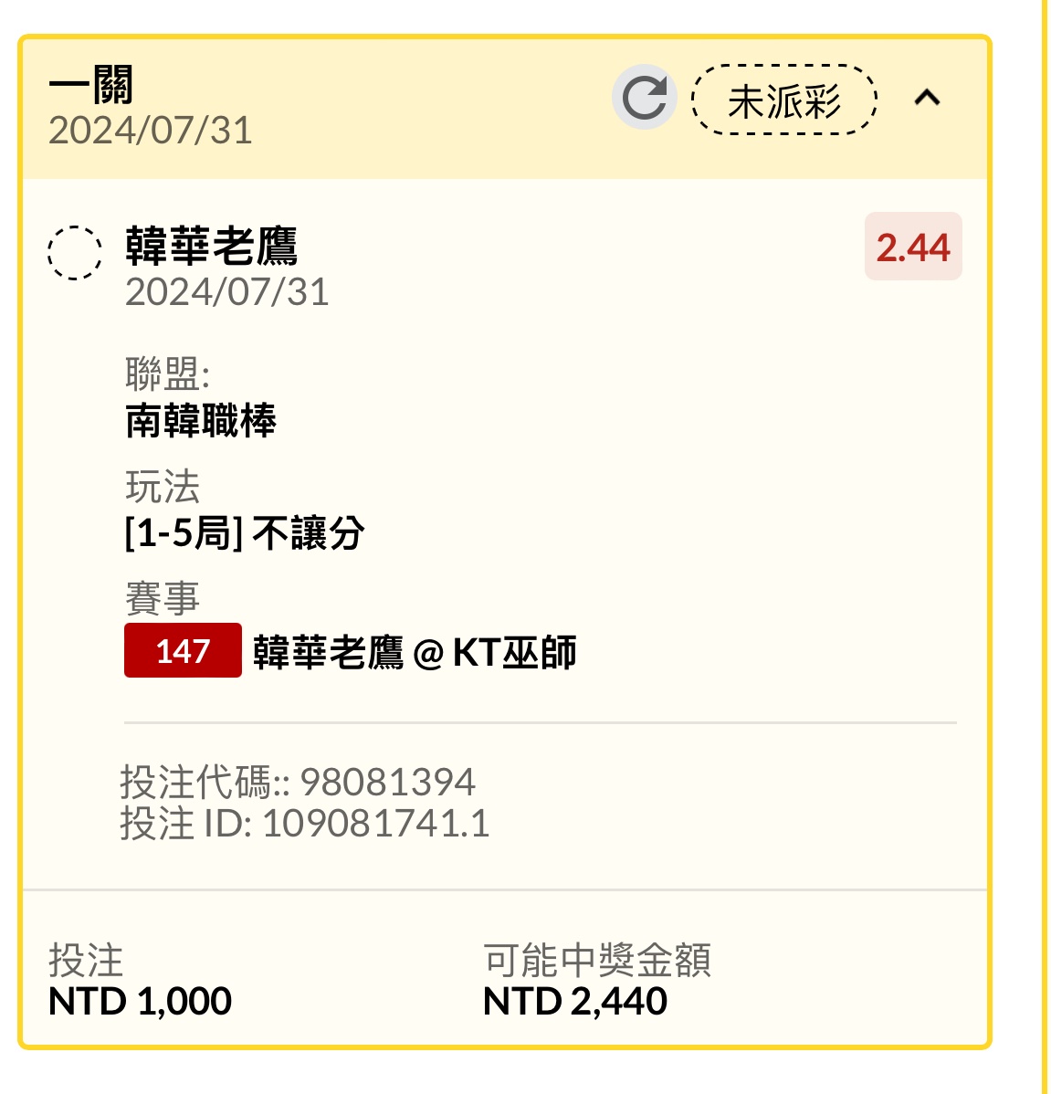 → jjking404: 孬剛以後應該不敢開韓棒了 104.28.222.164 07/31 20:49