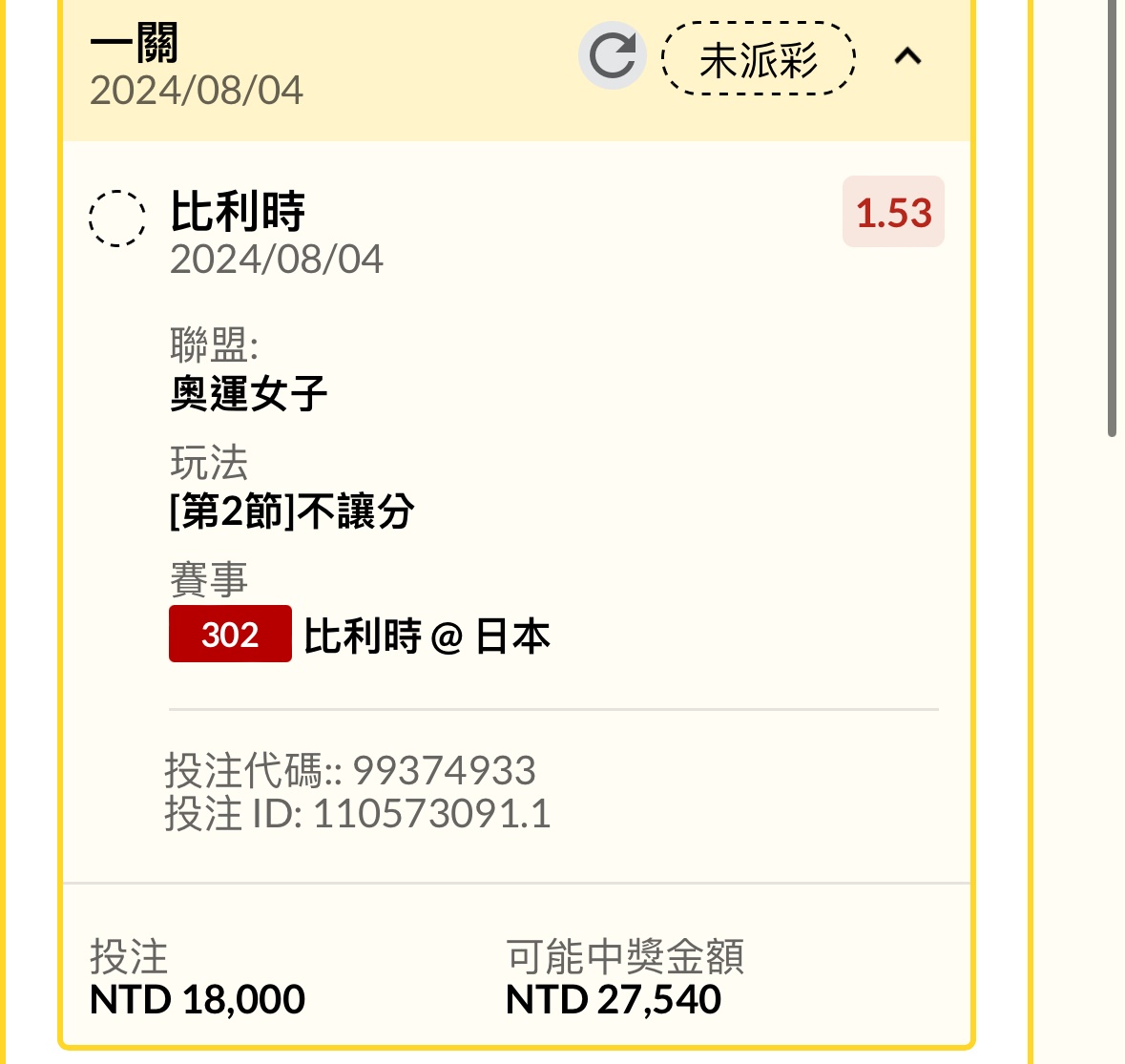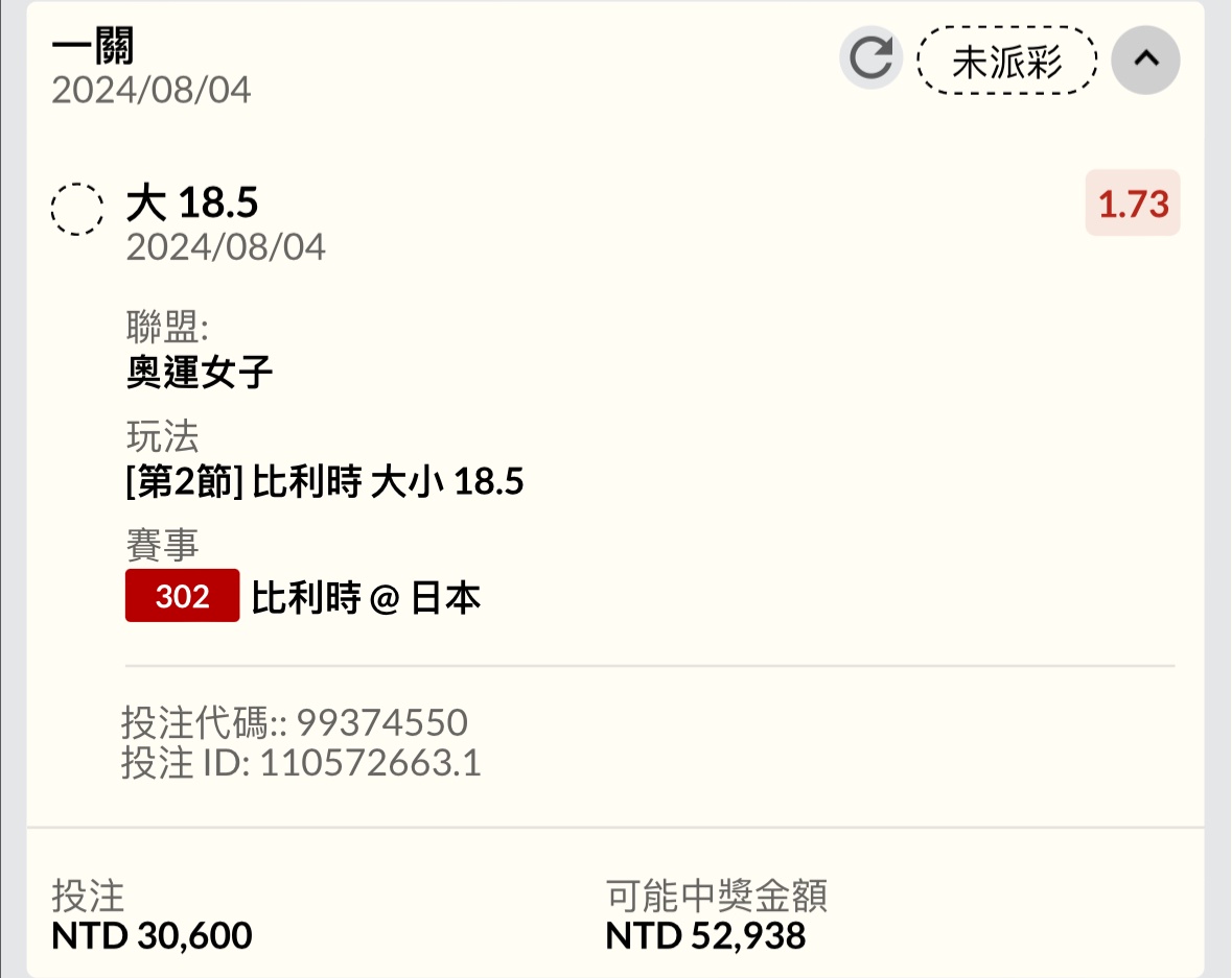 → clothj59919: 半場比利時-4.5 日本63.5小 日本鐵 122.100.81.10 08/04 17:19
