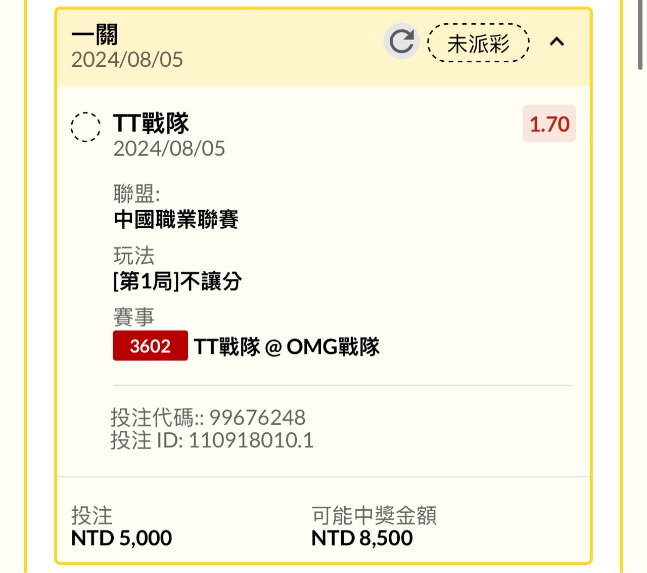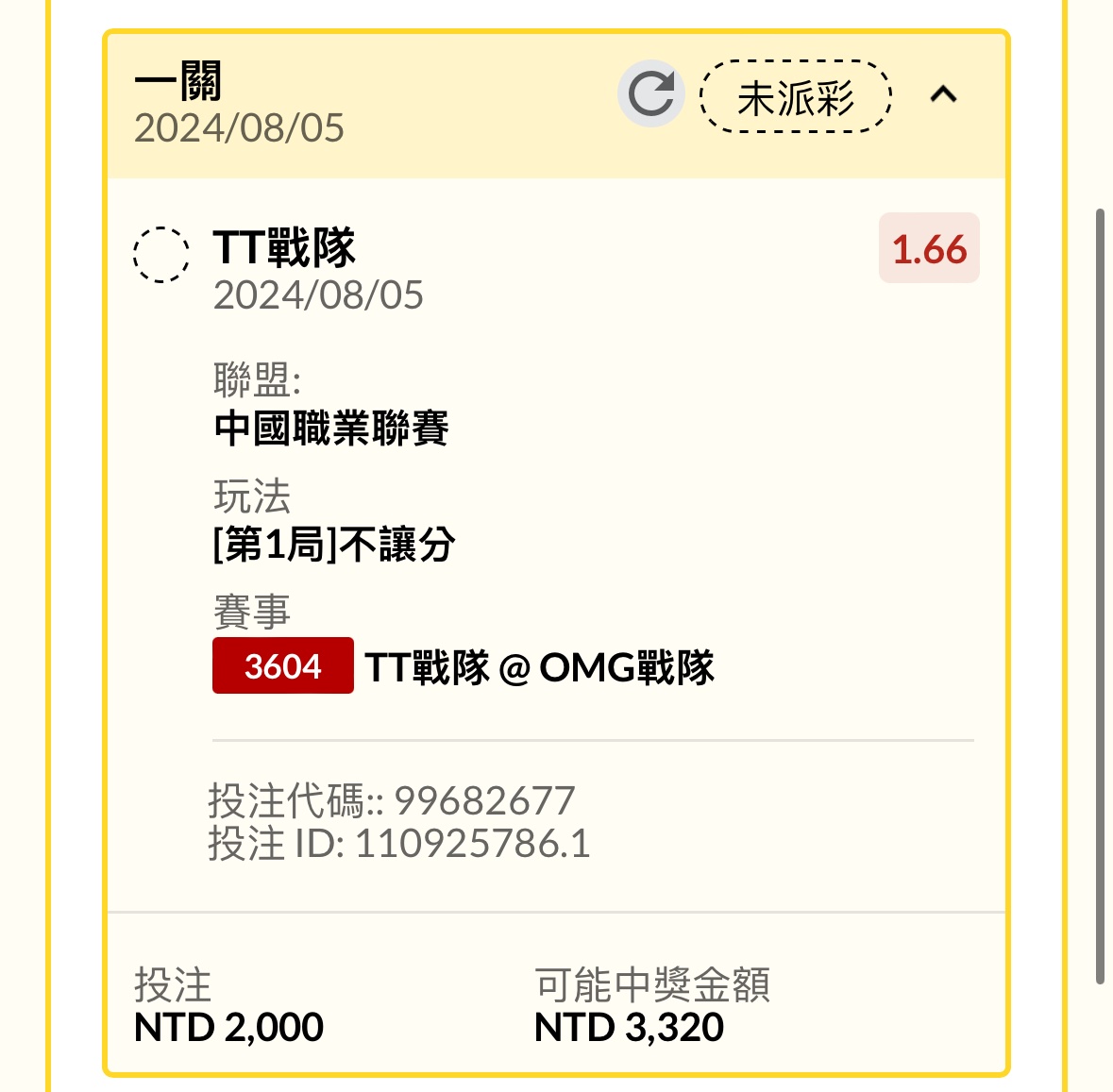 推 ohisJBkkkk: 第一局TT 1.76買了一萬 希望能收 101.9.99.240 08/05 18:41