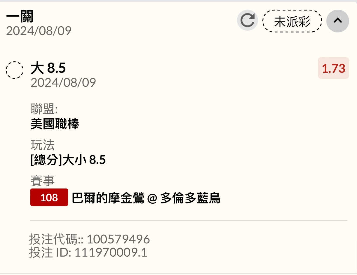 推 mumu0303: 受讓1.84 獨贏2.6... 49.216.110.237 08/09 08:45