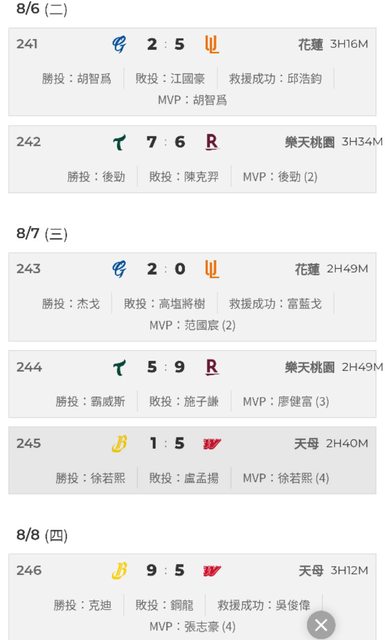 再來看到上週的週二週三週四賽果