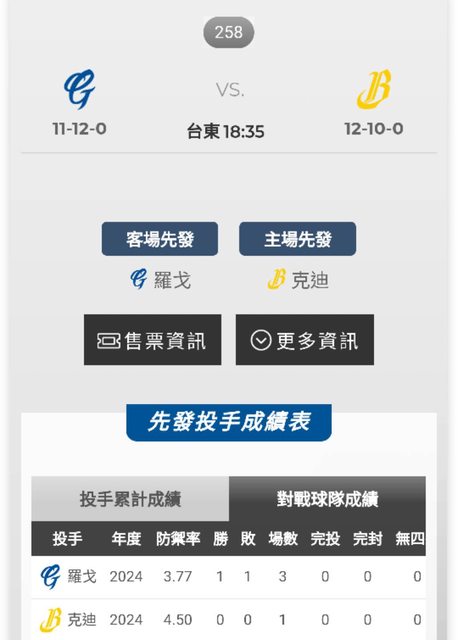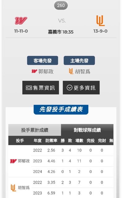 首先先看先發投手對戰數據