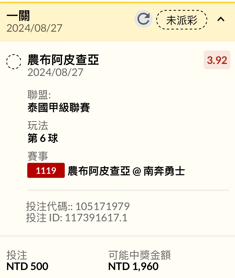 → ty7788665: 中場6+幾倍啊 有人知道嗎? 106.1.217.229 08/27 20:39