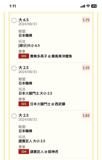 巨人 老虎場 巨人單大2.5(賠率1.83