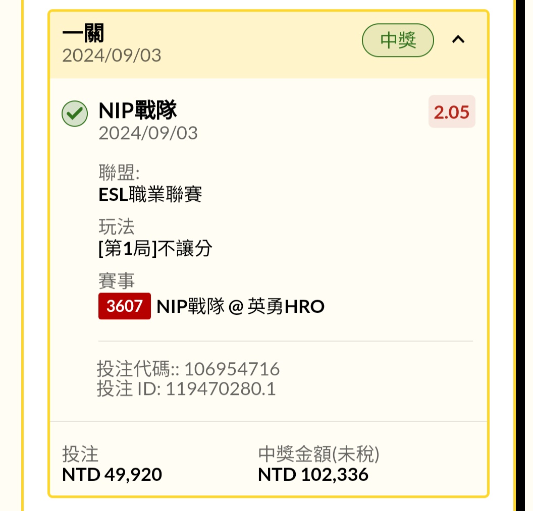→ jeffrey0401: 不知道無效投注還是算NIP 1.34.205.22 09/04 00:16