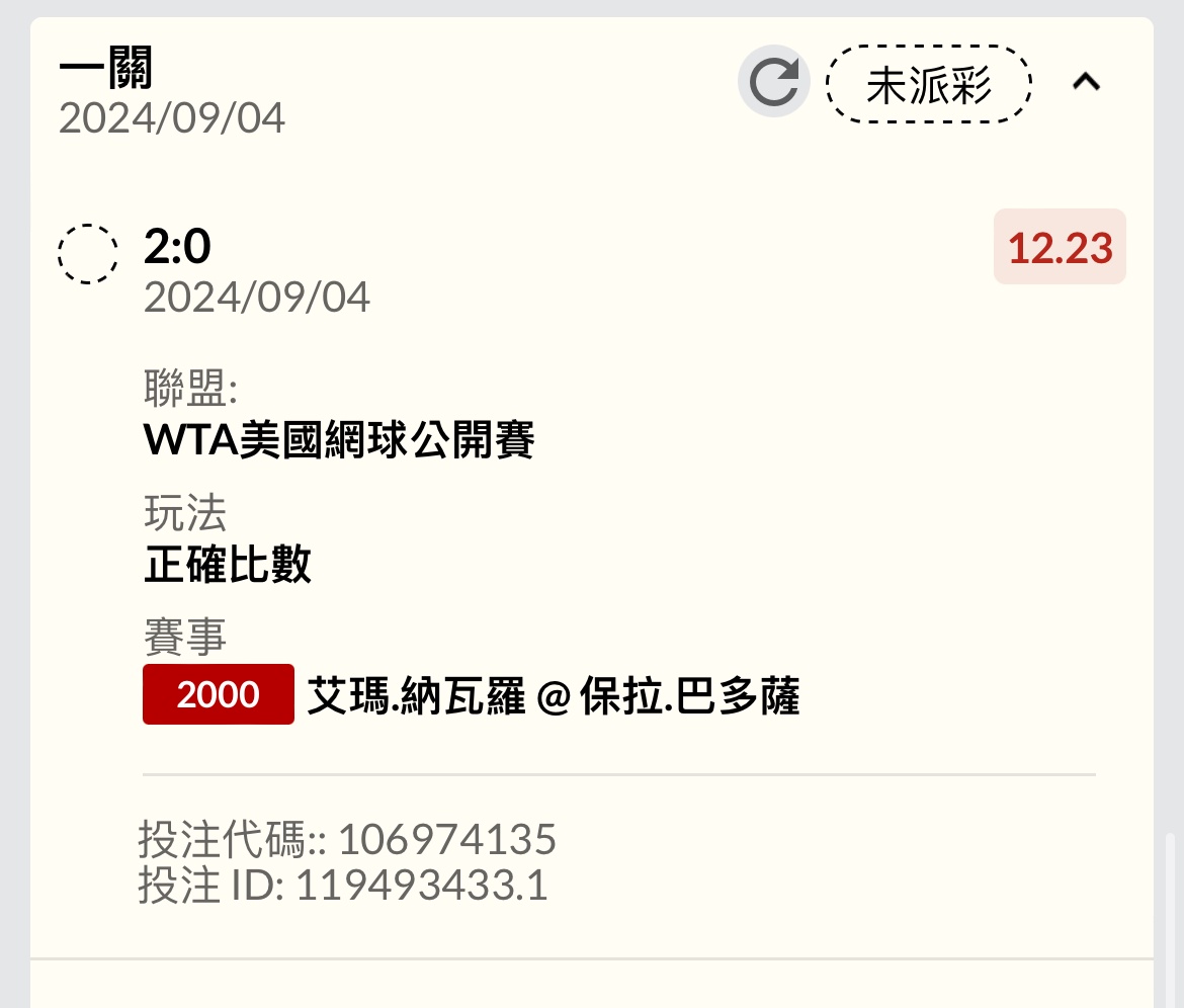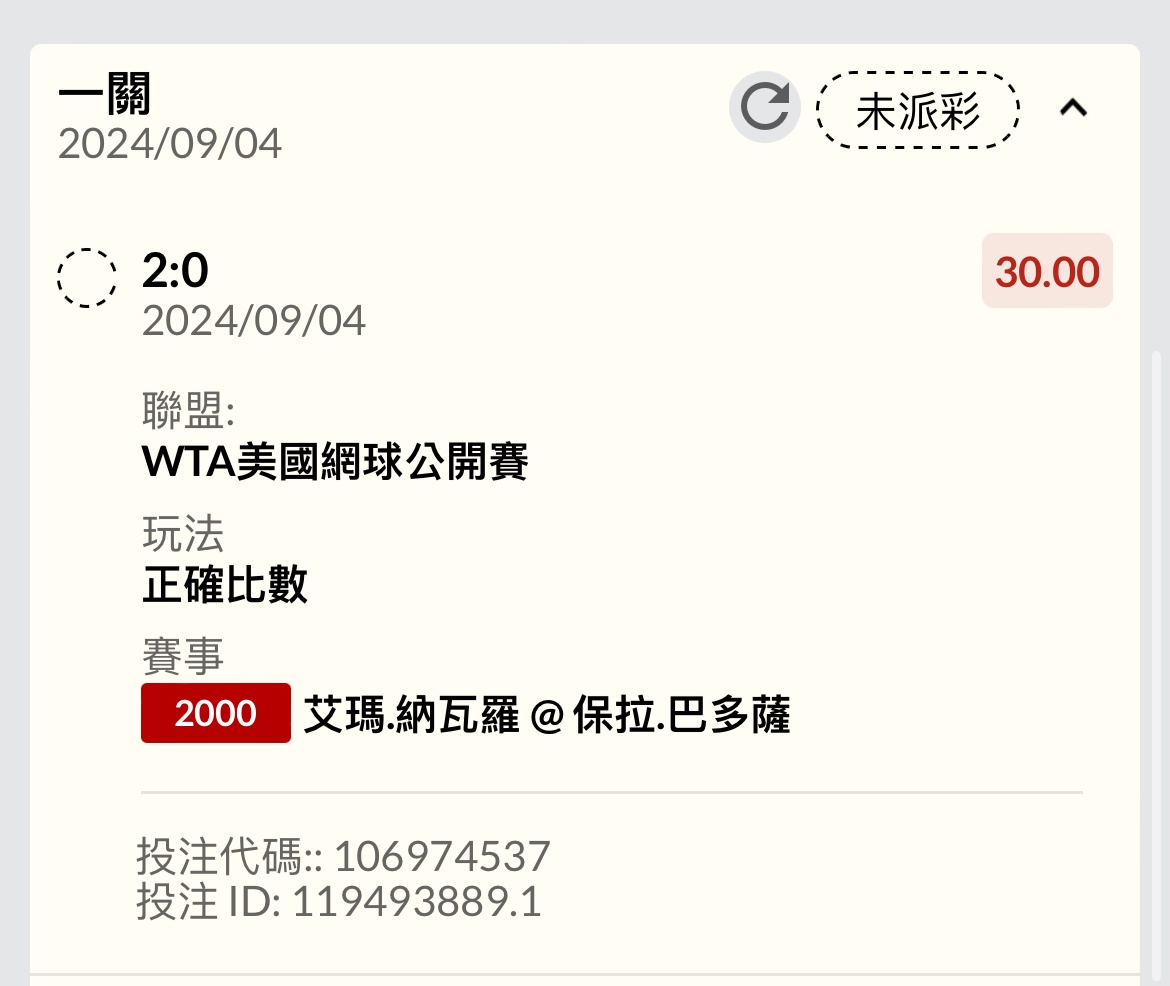 → Taiwan007: badosa排名後面卻低賠,相信她223.139.125.225 09/04 00:17