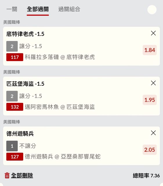 最近一個月串關沒過,前幾個月MLB一個禮拜都還能過個3張。