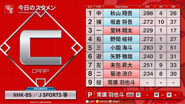 標題棒球「天九牌」NPB広島東洋カープ