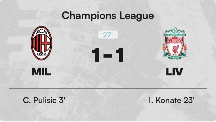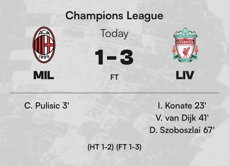利物浦2:2AC米蘭 10.00