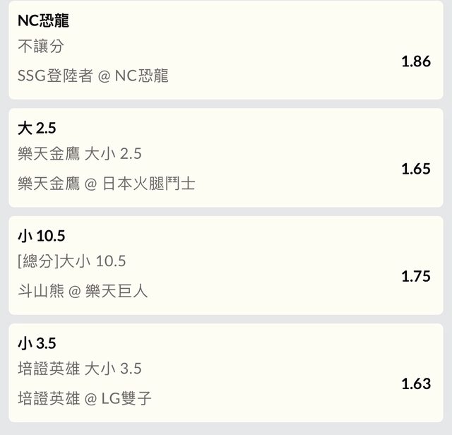 斗山熊v.s樂天巨人。10.5小1.75