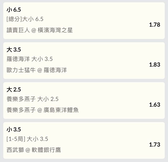 多多v.s廣島。多多2.5大1.63