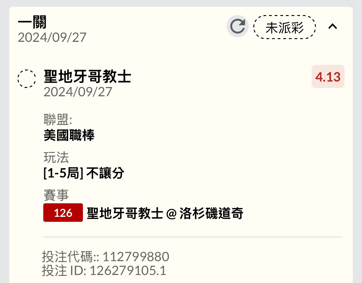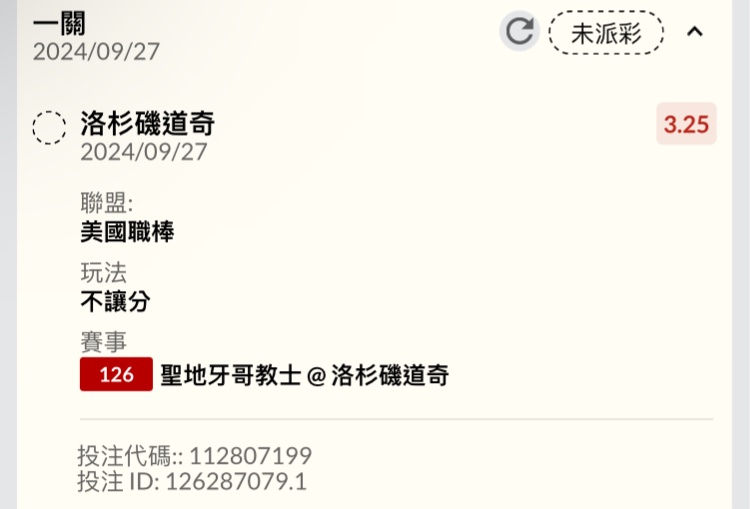 → sean910587: 爽啊 大7.5收 凹回來了 這場沒輸沒贏 42.73.184.109 09/27 12:26