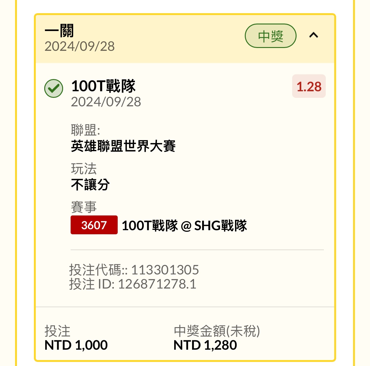 → Taiwan007: 幹,100賠率1.30真的算超甜 223.139.52.64 09/28 23:13