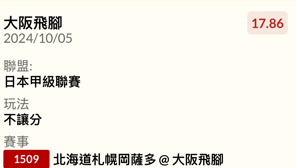 → tieysn: 足球真的不能買小 對吧 1.173.26.212 10/05 18:30