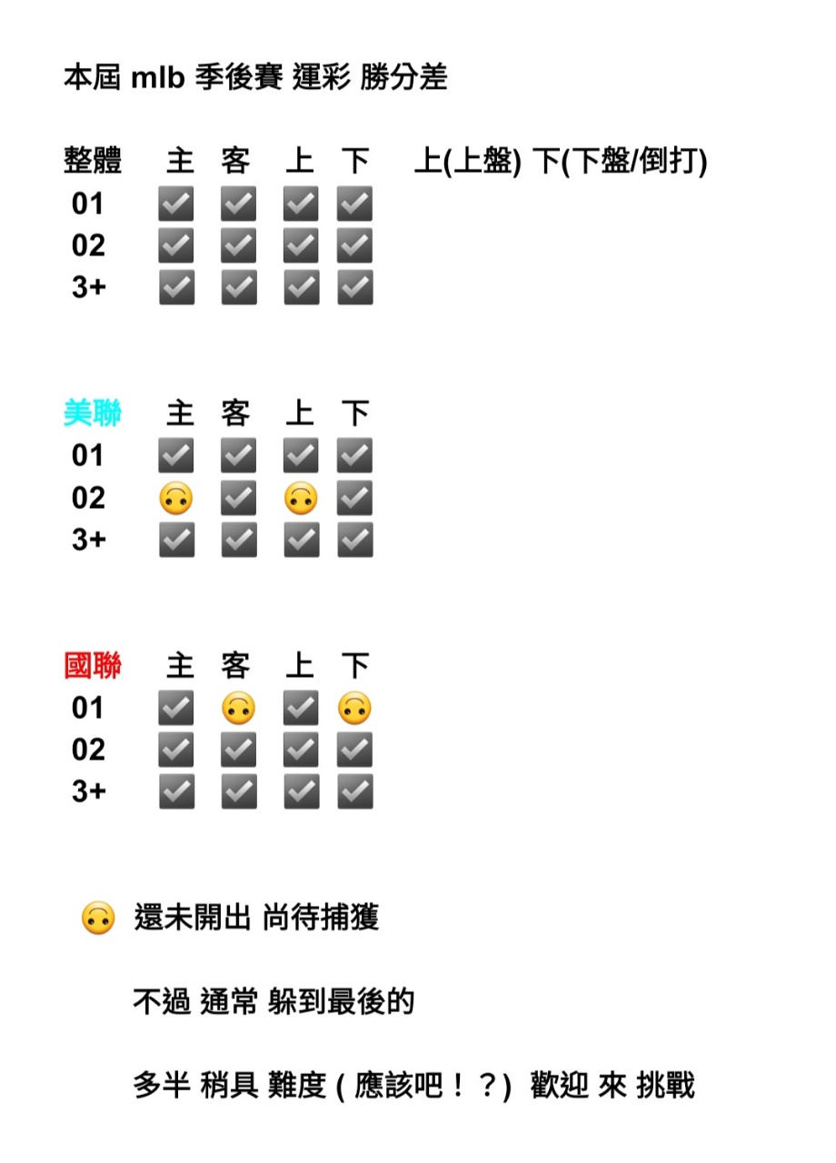目前季後賽 扣掉外卡Pass 從AL/NLDS開始碰 3-0
