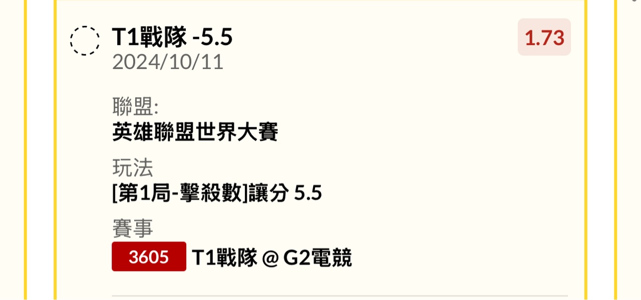 推 eaurouge7: 場中開到2.7 太神啦T1 -1.5收 180.217.228.74 10/11 21:41