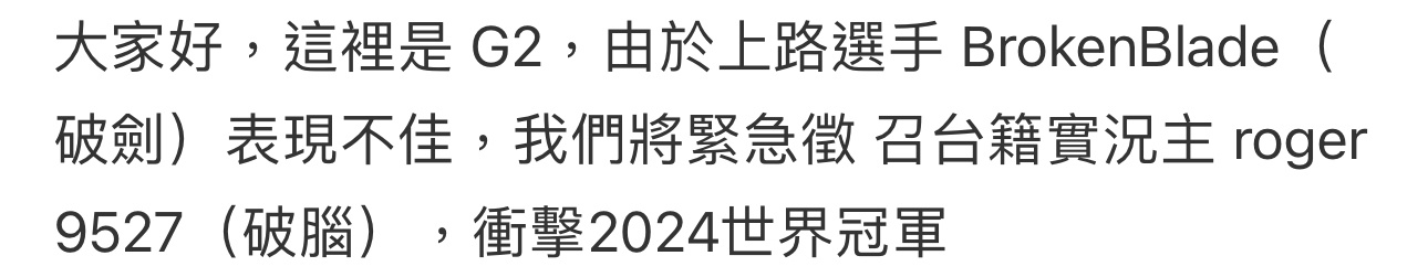 推 philosopherh: 第一局很多人押g2 101.12.101.77 10/11 20:30