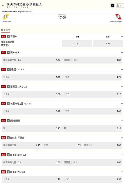 推 chi0615chi: 巨人-1.5 1.88 39.1.38.129 10/20 16:00