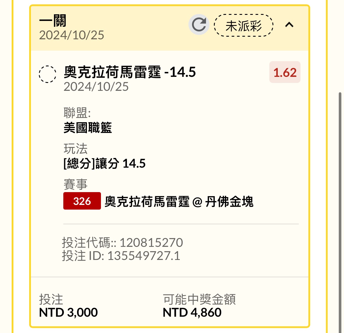 推 y9111116: 雷霆單小1萬收 舒服 42.73.234.180 10/25 12:22