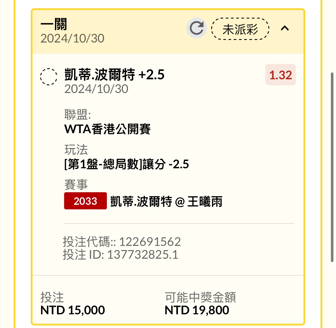 → boydogboy: 第一盤 +2.5 15K收 39.12.105.220 10/30 17:54