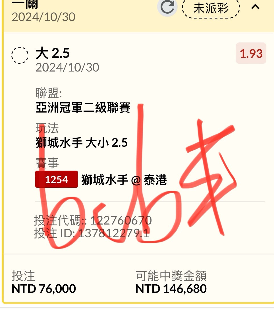 → nnn820328: 獅城上破賠率記得蠻高的 好像2.2 49.215.84.72 10/30 20:15