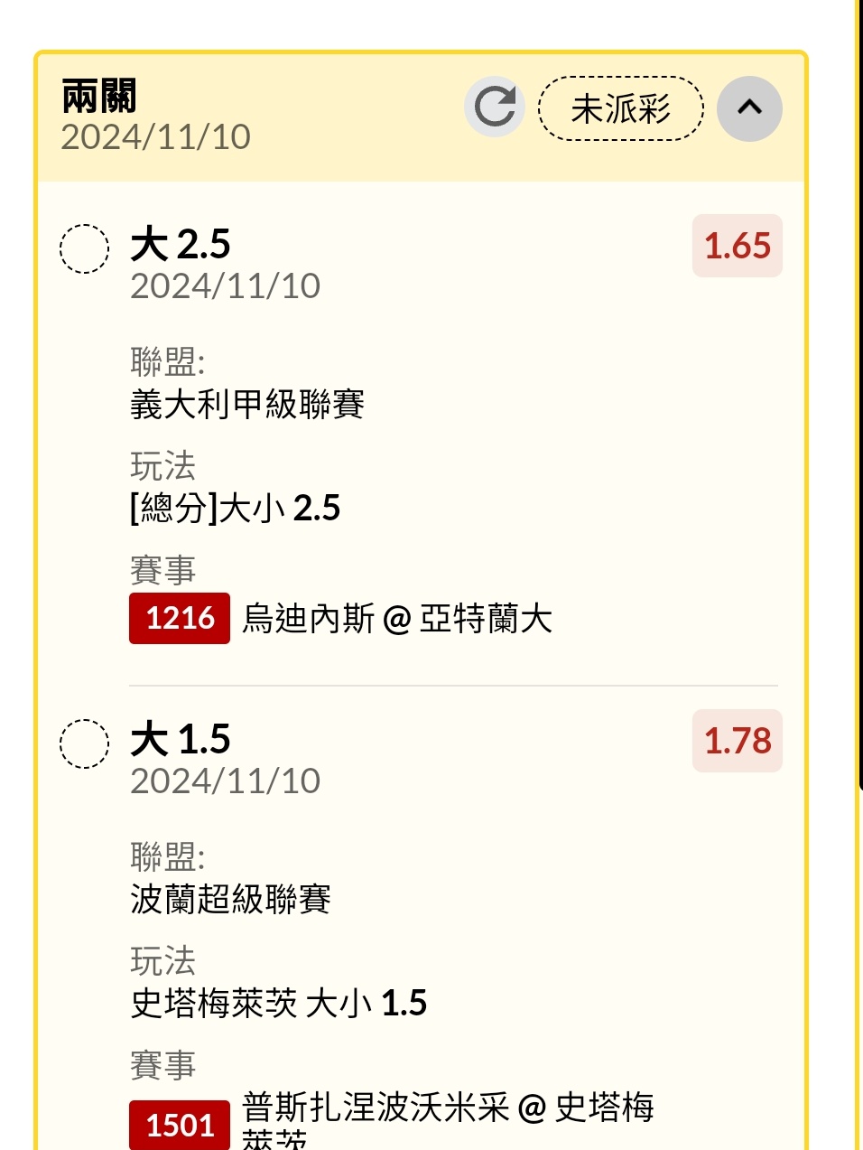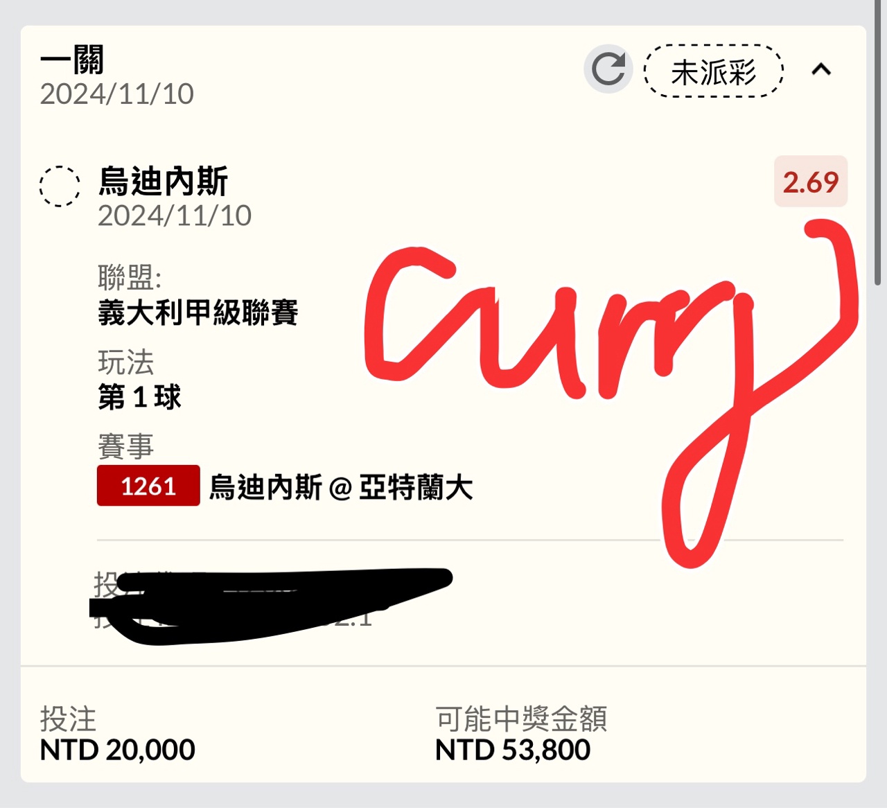 噓 chu0401520: 可以退嗎還沒賠率呢223.137.201.105 11/10 19:43