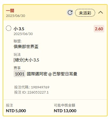 推 nick04140414: 賽前2.5大,1.68還在等1.8結果就 123.193.210.93 06/30 04:19