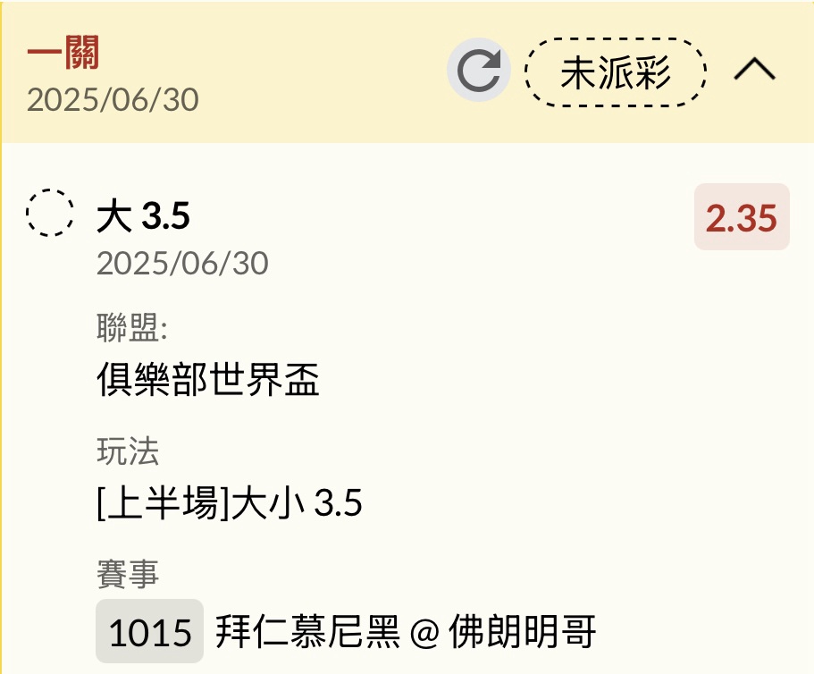 → sulaeric: 拜仁 我剛剛要追第三顆 等一下賠率就沒 101.12.113.234 06/30 04:47
