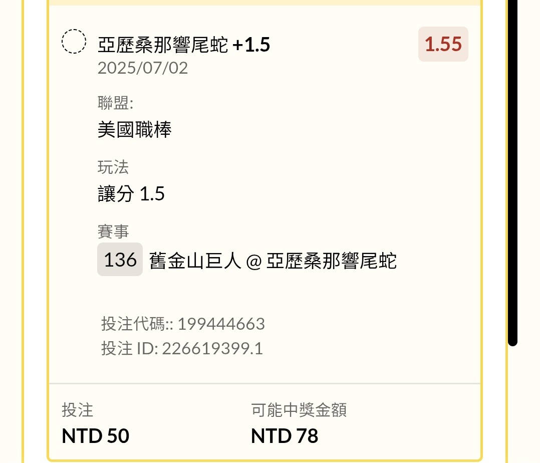 → jerryyuan: 早場買紅人大結果紅襪再打、這場買蛇大 122.121.148.56 07/02 10:06
