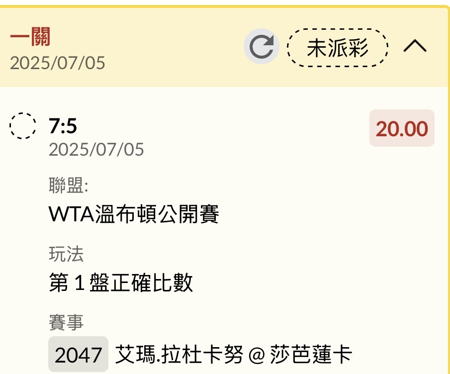 推 sulaeric: 運氣沒有了。網球差一點點20倍 49.218.205.226 07/05 04:10